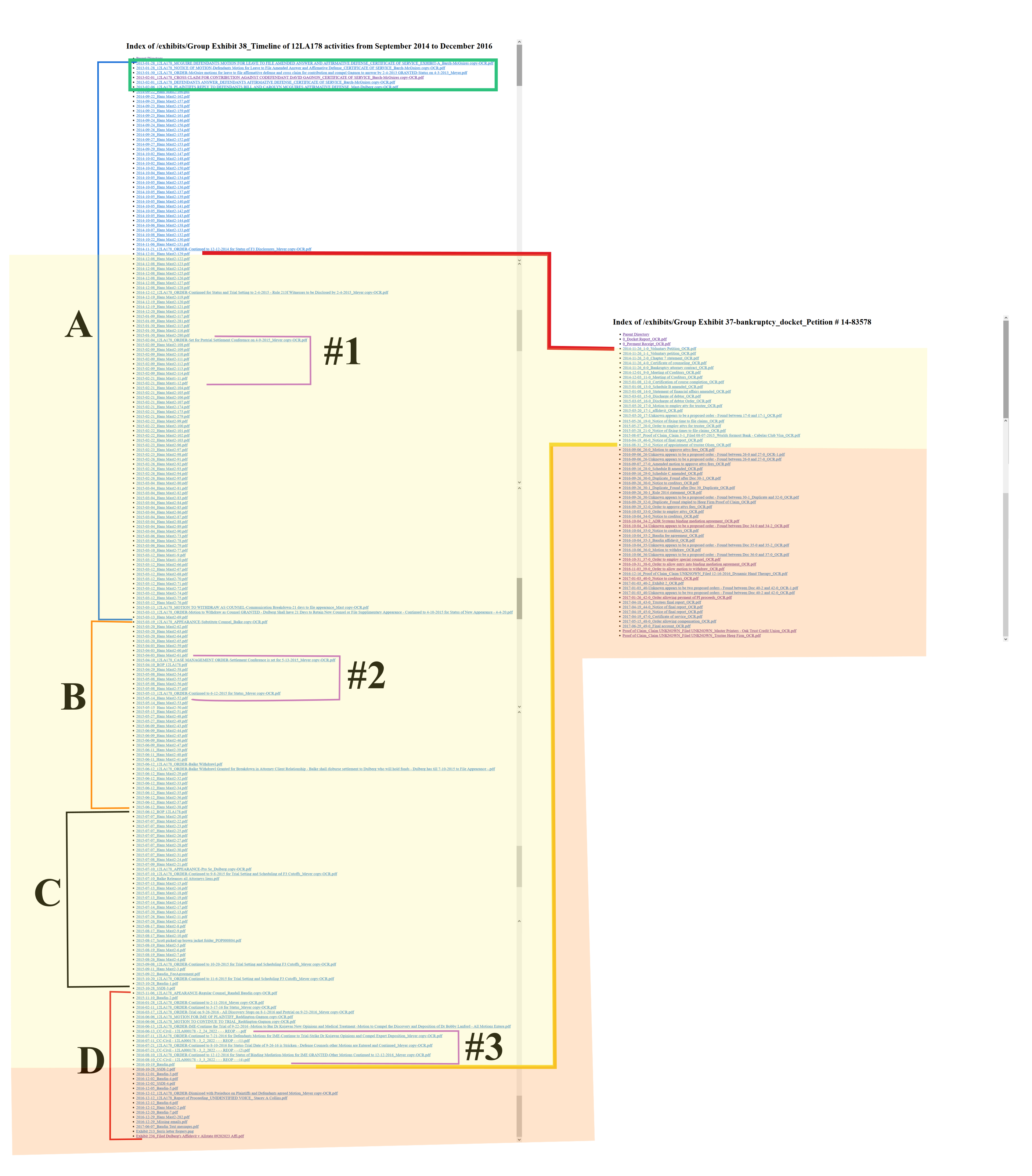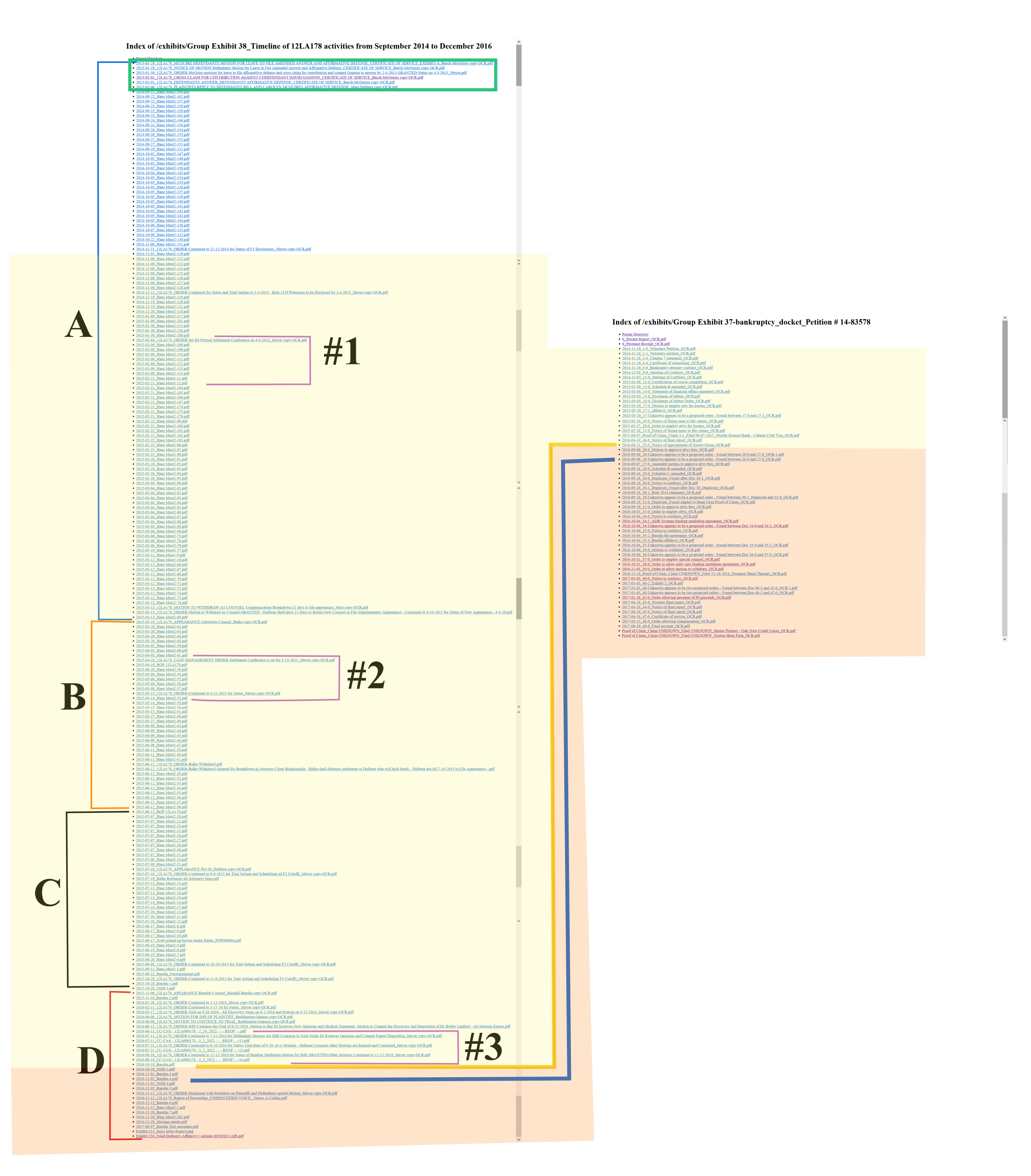 Index of /exhibits/Visual Aid 44 - Timelines of PI case 12LA178 and BK case 14-83578 compared